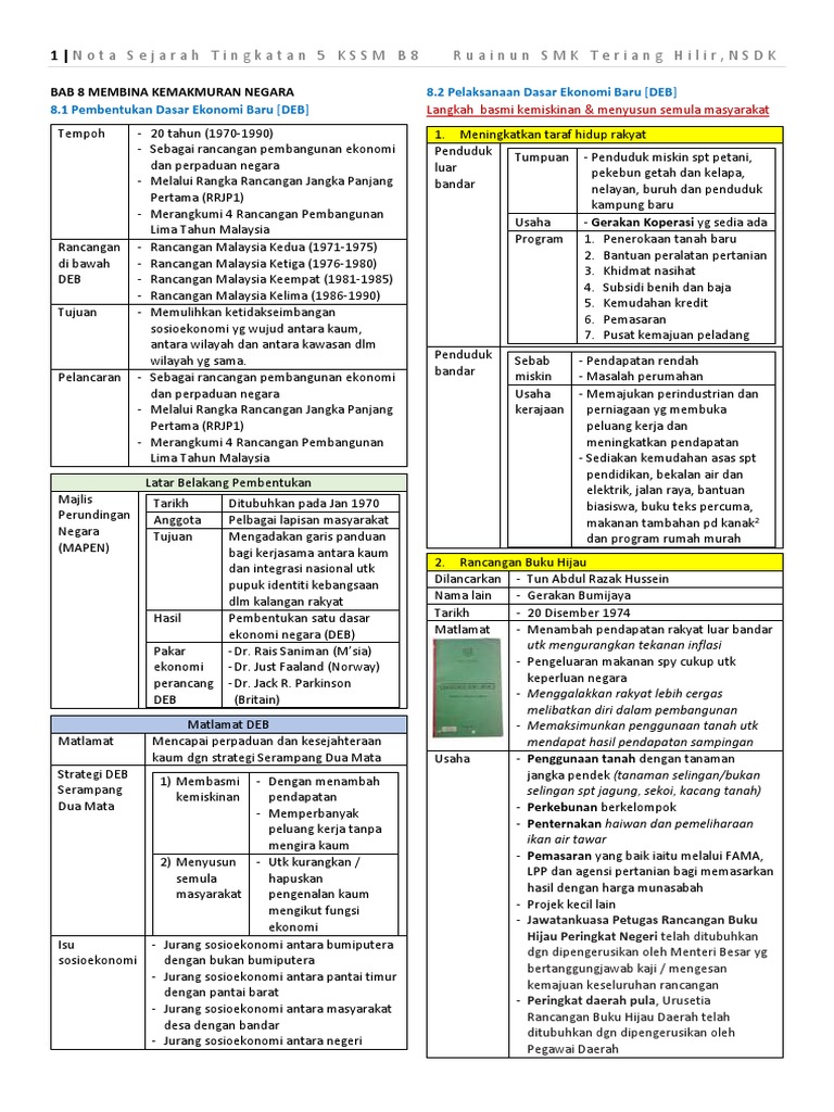 Nota Sejarah Tingkatan 5 Kssm B8 Ruainun Smk Teriang Hilir Nsdk Pdf